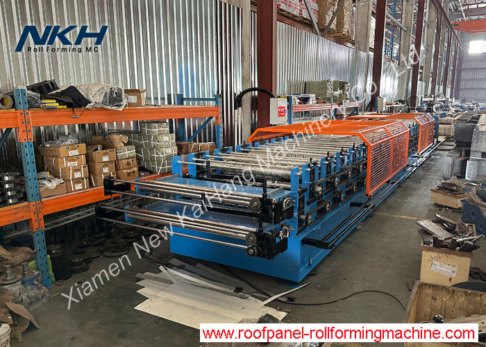 Una macchina per la formazione di rotoli a doppia lamiera è di solito costituita da un decoller, due guide di alimentazione di ingresso con taglio di ingresso opzionale, due sistemi di formazione di rotoli,un telaio di taglio con due matrici di taglio (una pressatura idraulica sarà dotata finché questa macchina di formazione a rotoli a doppio livello è progettata per produrre piastrelle di tetto vetrate metalliche), un sistema di trasmissione, un sistema di controllo e tabelle di funzionamento.Per i clienti europei, ci sono coperture di sicurezza e un marchio CE sul corpo della macchina.